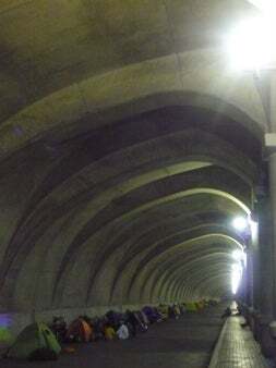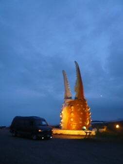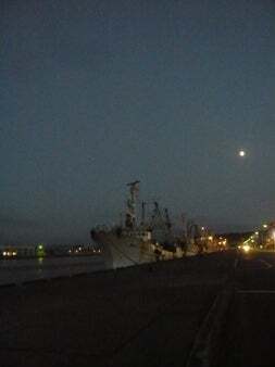 ↓稚内港北防波堤ドームはバイカーの宿泊所になっていた。 ↓稚内港と月