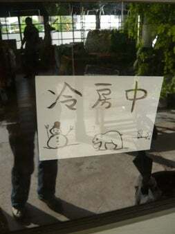 ついに工房にクーラーが付いたらしい。この張り紙から伝わる喜びに省エネは休憩