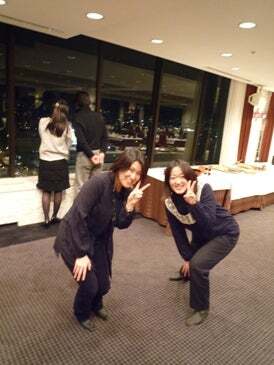 パークホテルのディナーショー受付、新婚さんにはしゃぐスタッフ。コラ、冷やかしちゃダメでしょ!ん?指令したの僕? ライブ後は部屋から弘前の夜明けを見る