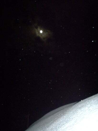 灯りを落した車内からは月も雪景色も見えます