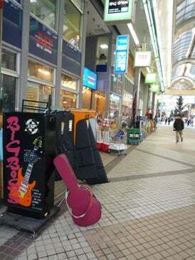 偶然迷って疲れて荷物を置いて休もうとしたら目の前が楽器屋さん。