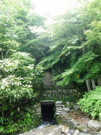 境内の「潮音洞」から出た水が建物の下や庭園(ライブ会場)を通って錦帯橋へと。