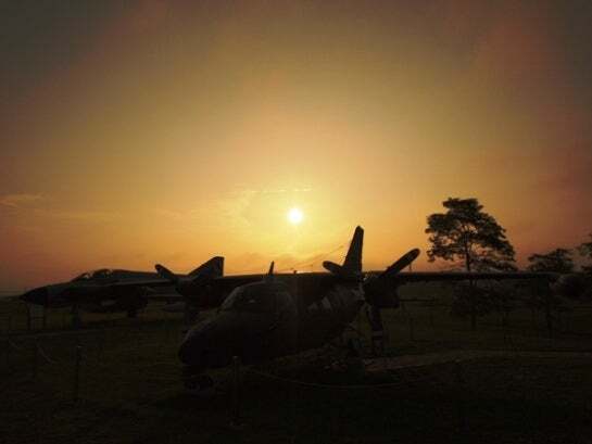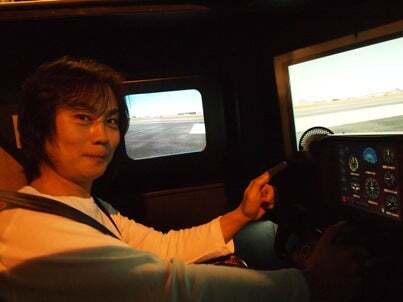 自家用ヘリで三沢航空博物館に来ているゼロ戦の復元機を訪ねた