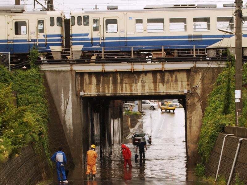 弘前駅の前で集中豪雨。一瞬で前の道は川に。ここ数年よく遭遇する気象。