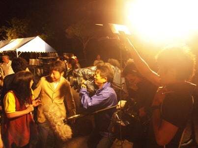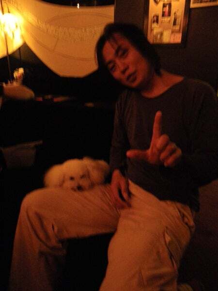 会場の脇道で村の健康優良児がライブ直前の僕を撮ってくれました。
