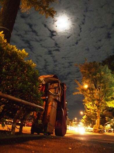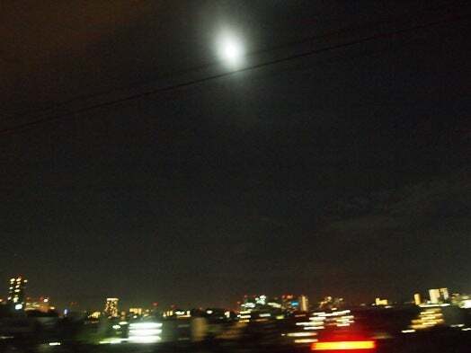 普段、列車の旅の最後は恵比寿駅から歩いて代官山を通って青葉台に帰るのだけど、この夜の月は撮っておこうと思ったのでした。そしてすぐ八戸、楽屋からの風景。