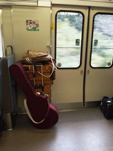 本来スポーツカーとして生れて来たZですが、屋根のRとギターの型がぴったり。いつものスーツケース二つ入って動かない、まさに理想の仕事バンにもなっているのです