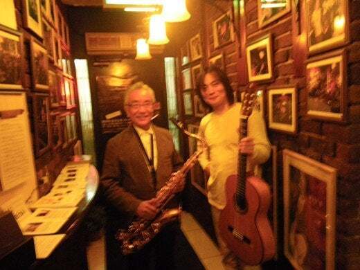 一番左の人がすっぽり写ってなかった↑ので撮り直しました。今度はしっかりと映ってます↓(左側の人) じゃんじゃん横町、ライブ会場の天空の下はまた別世界。
