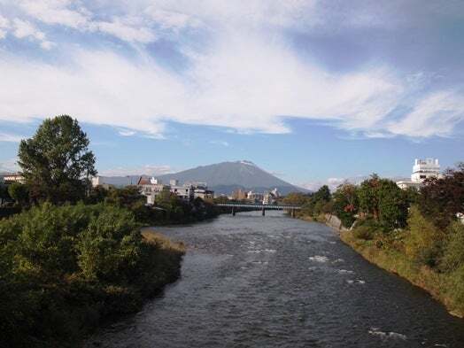 岩手山を見ながら開運橋をわたり盛岡すぺいん倶楽部へ
