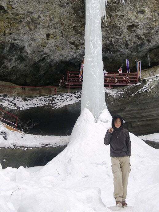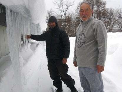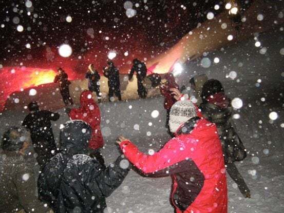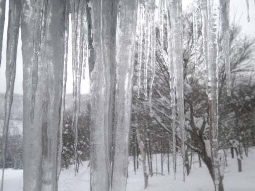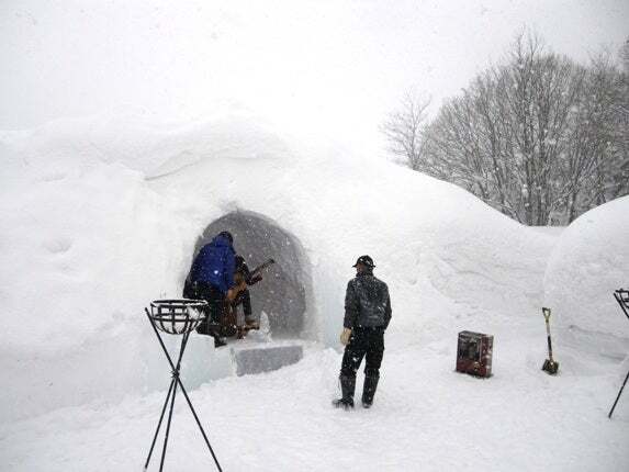 ライブの空き日に真狩チームとニセコチームのご対面。今年の氷柱はデカイ。