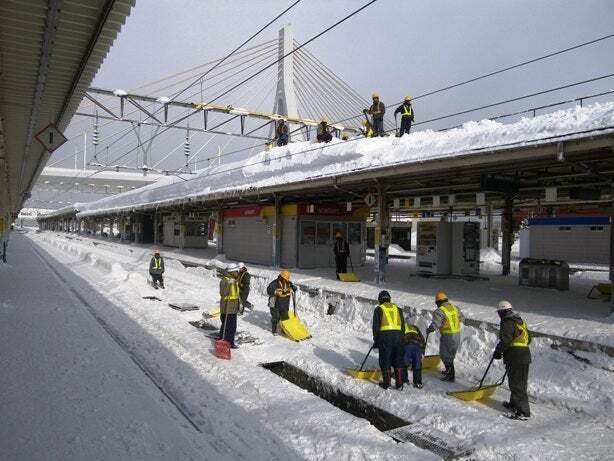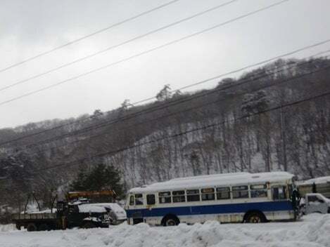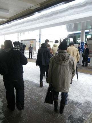 豪雪の取材陣を脇に青森からバスに乗る。弘前は駅が麻痺していた。