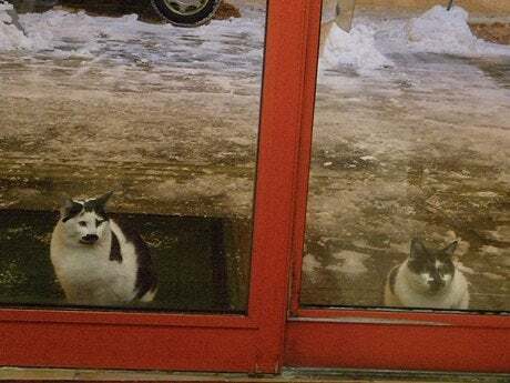 ま、ガラスに映っただけだけど。
