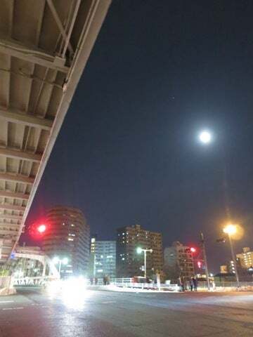 さくらさくらライブ後、打ち上げ準備中の不意打ち撮り 帰り道の月。あぁ~滑る。
