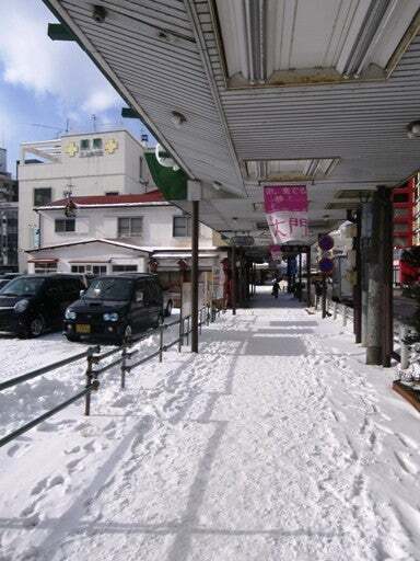 ライブ日は快晴。アーケードも構わず積もる雪。リーフの前は手動ロードヒーティング