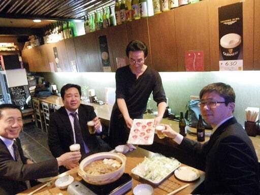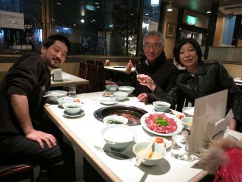 向かいの食道園の焼肉の食べ方はすき焼き風、先輩、いただきます(^^)