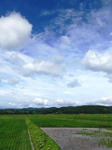 「見れば田ぁ~の~中ぁ~稲ゃよくも~でぇ~る♪」僕は津軽甚句を口ずさみ