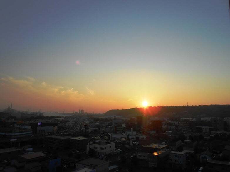 いつも通り過ぎていた室蘭の街。用意された部屋に上がれば迫力の夕陽。