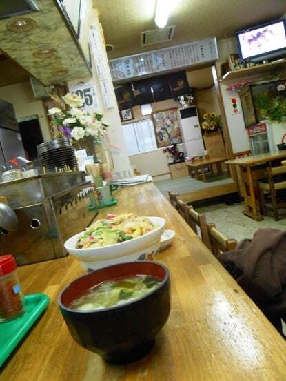 馴染みの店のカウンターにはカツ丼の華やか流れ者セット。