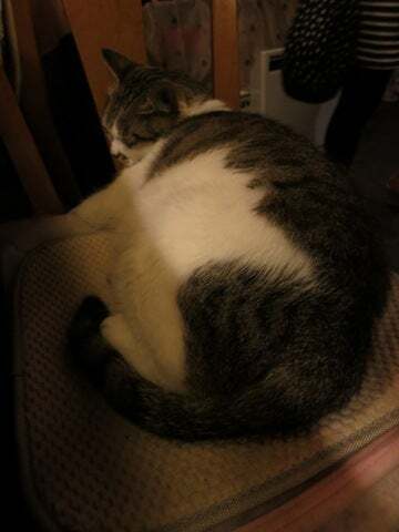 ライブ前日の実行委員会会食の場に猫。ライブ当日の会場に猫(ちゃとら)