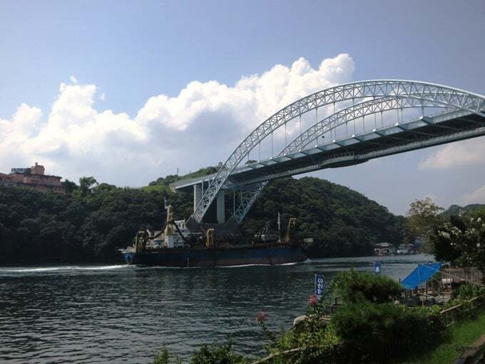 津奈木の橋のたもとで江戸への道と分かれ、湯児で海賊船を発見しつつ