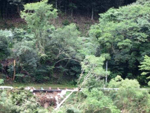 産庵のすぐ上はこうやって仮の道路が作られてました。若い衆達も復旧作業で倒れない事を祈ってます。あんまり頑張るなよ~!