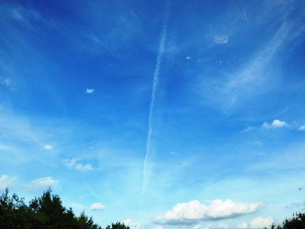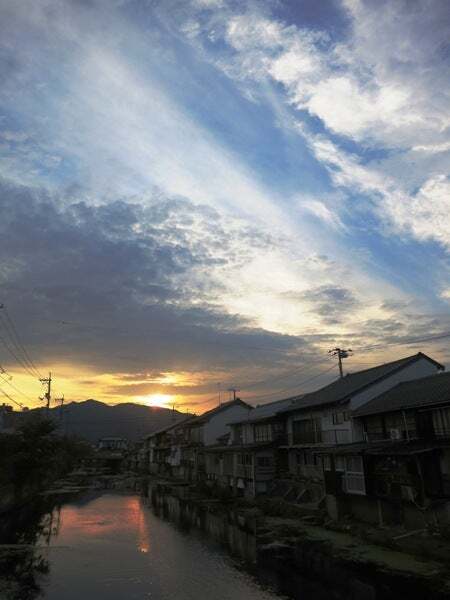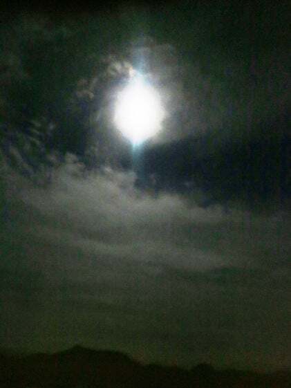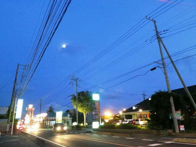 ↓行く道の雲の線は夕方まで消えず ↓帰りの月は妖気に燃える