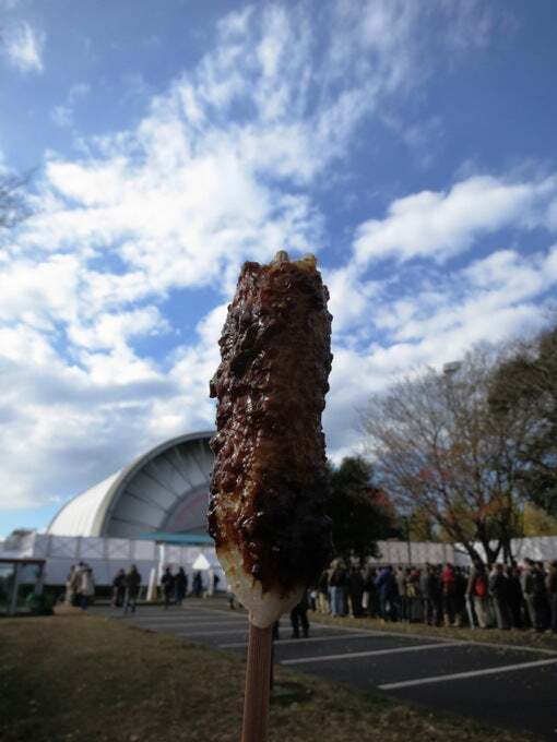 きりたんぽを食べながら格納庫への列に並んでいるとエンジン音が聞こえる。