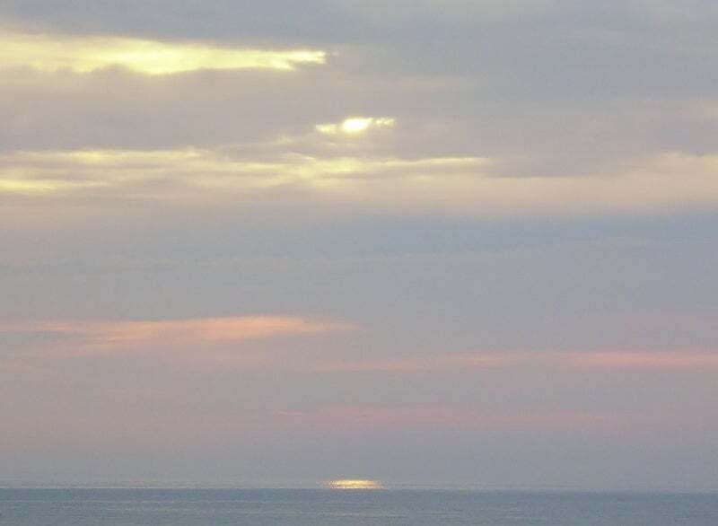 停泊明けに見た海に太陽の贈り物。横目で見た道端に落ちてた蒸気機関車。