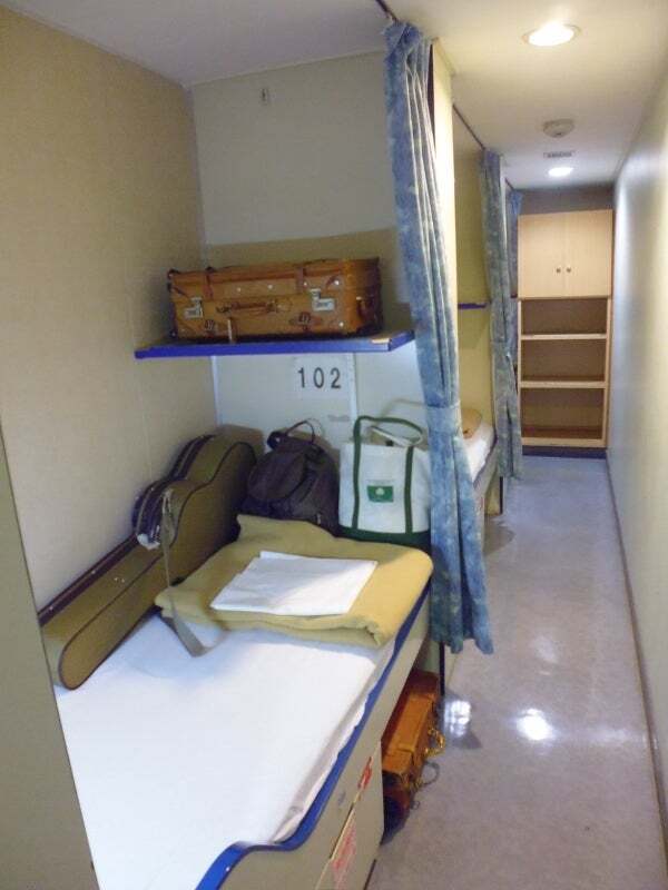 なぜなら明日は茨城だから(^^)フェリーに乗って大洗を目指すのさ。航海中の船室の窓に幻想の太陽。『銚子プラザホテル』黄金井脩ディナーショウ2デイズ