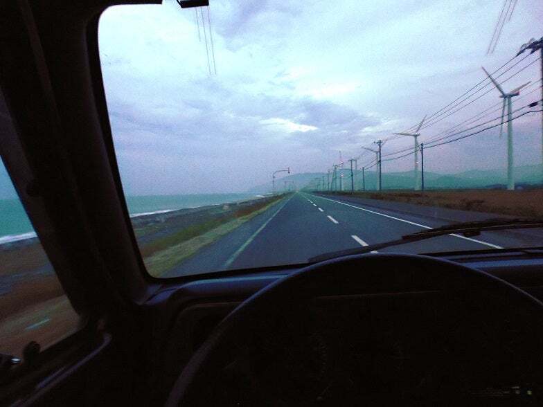 下北半島上陸後も信号待ちシャッター。停泊後元気に八戸に向かう!