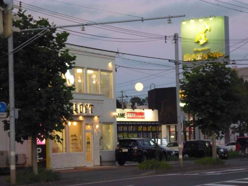 太陽のような月を見ながら苫小牧へ向かう。到着したらば、港一番の旨い店に行って美人ママ達に近況報告をしてマスターと寅さん談義。部屋で洗濯もする。