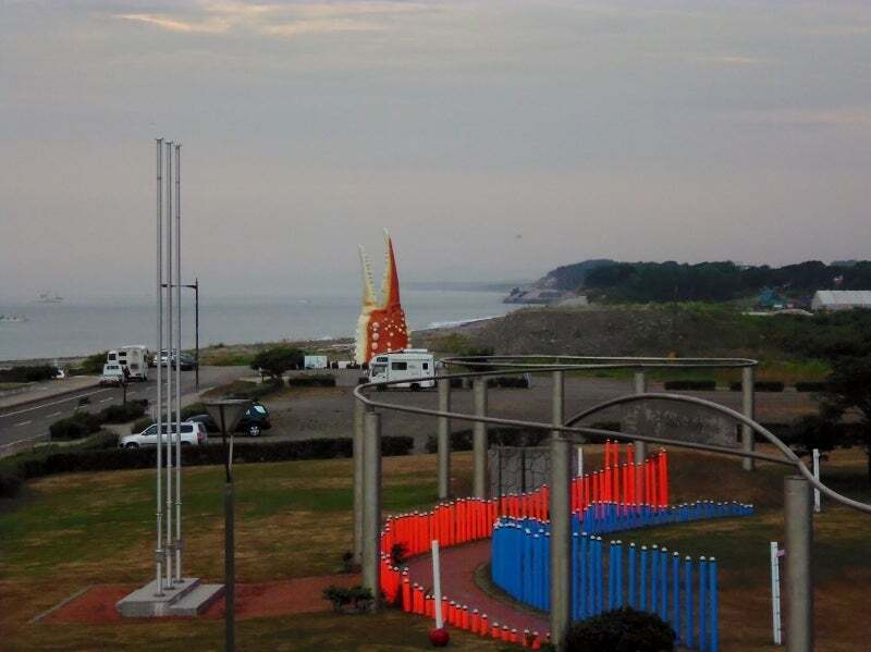 駐車中のお隣さんは夢の旅か。大きな家族やグループの旅満喫って感じ♪北海道はちょっと遠回りでもナビを切ると楽しい風景がたくさんある。かにとか。