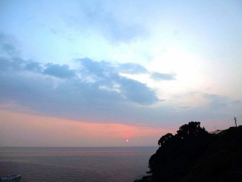 そのまま市街を越えて海に出るとこの夕陽のテラス。内側が今夜のステージ♪