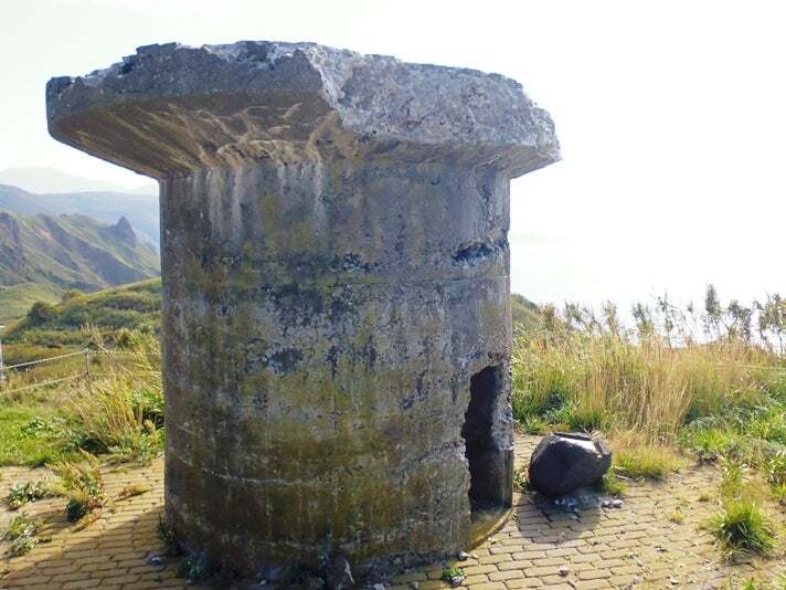 ↑突き当たりの下にある小さな穴が念仏トンネル。↑砲台の跡。