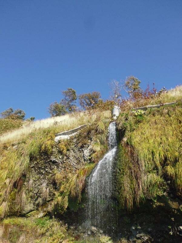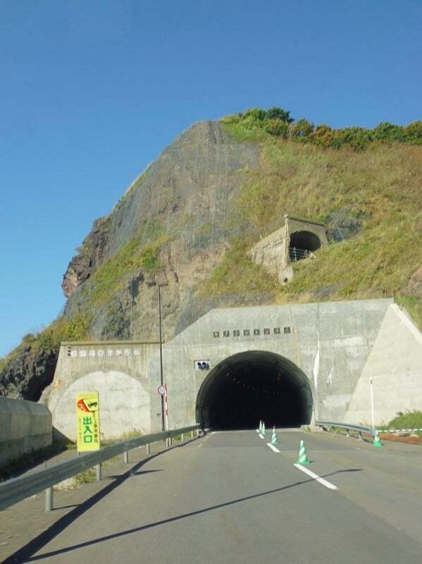 新しいトンネル古いトンネル、道端に小さな滝。これが北海道の北の海道路。