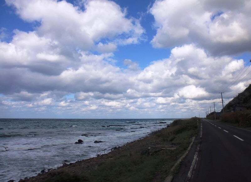 翌朝は日本海を北上~。なんか雲がいい感じ。この辺は絶景の連続です