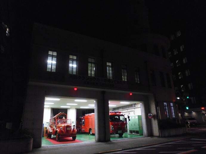 ボンネット型消防車と建物は高輪のシンボル。富士は日本のシンボル。で、
